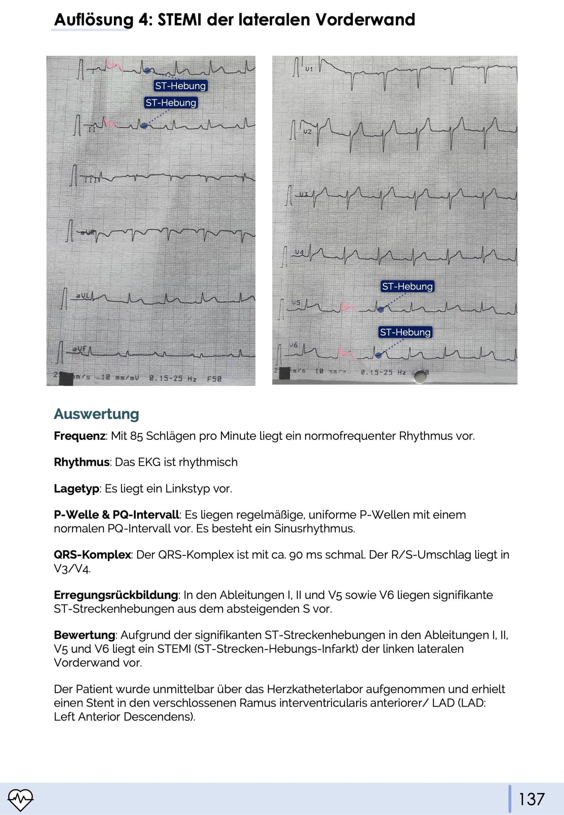 💪🏼 Praxisorientiert: strukturierte und sichere EKG-Auswertung lernen, EKG-Pathologien einfach und verständlich erklärt, echte EKGs mit Auswertungen und Markierungen zum Üben